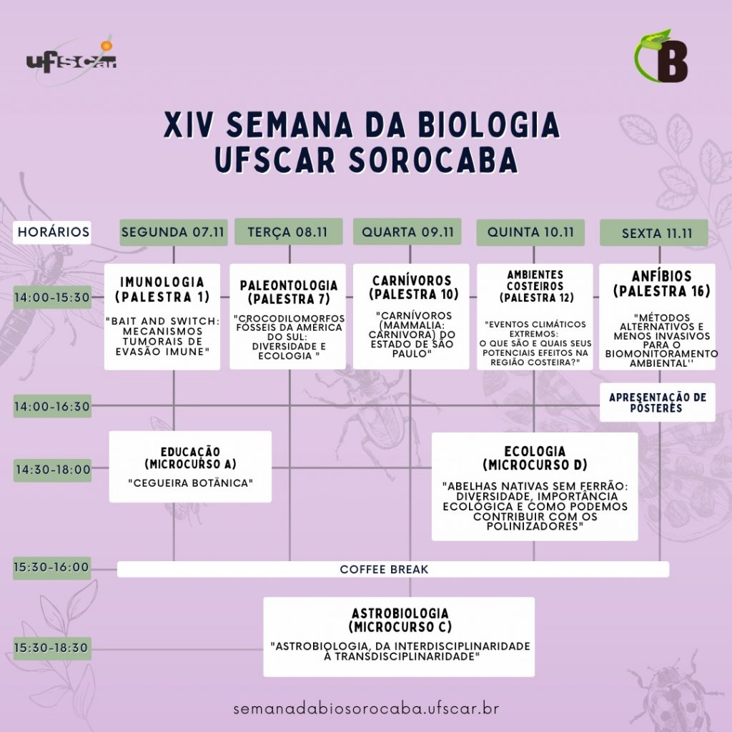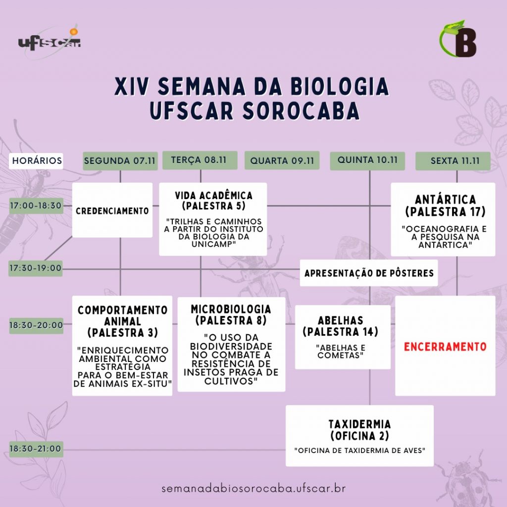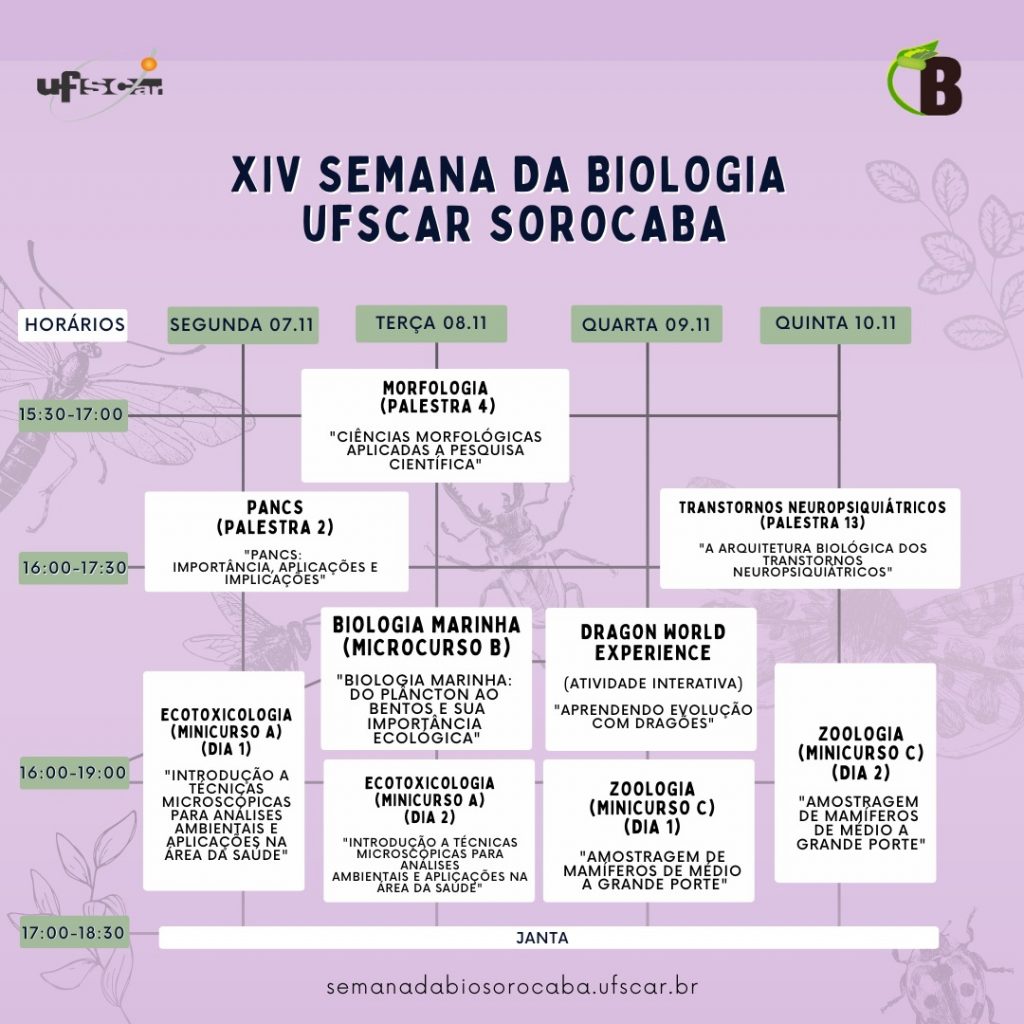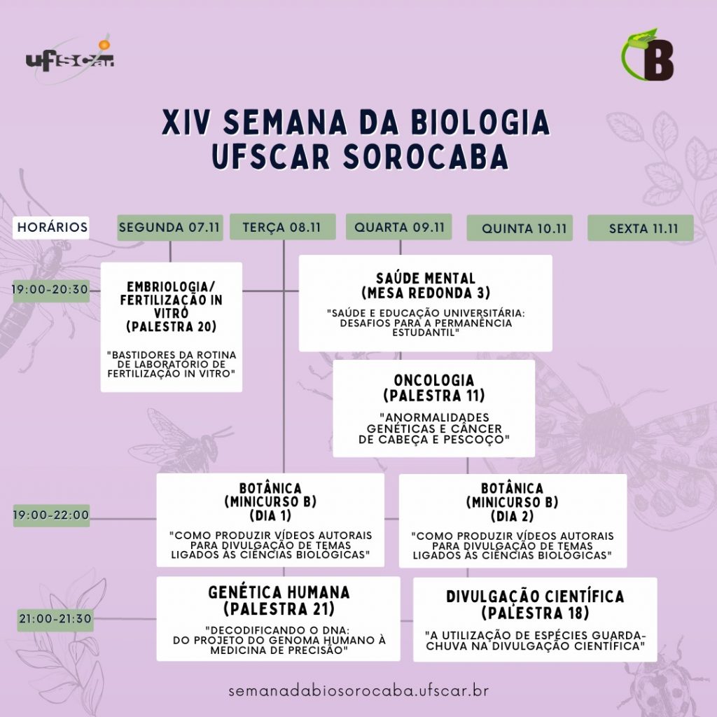 Cronograma da Semana da Biologia período noturno 2022